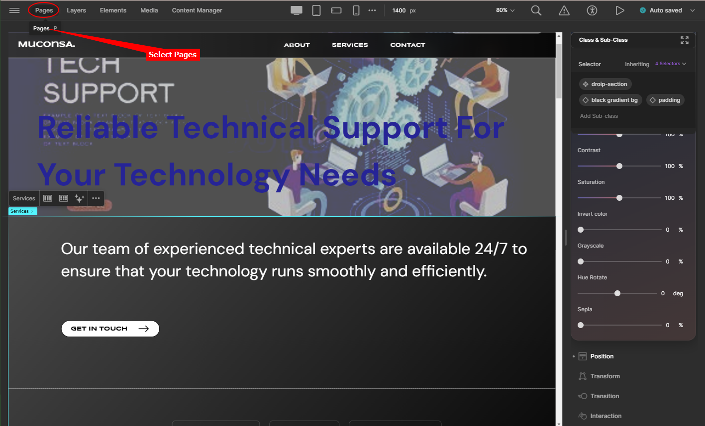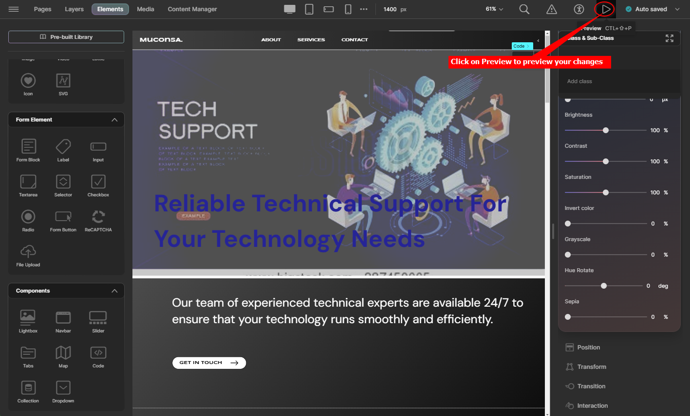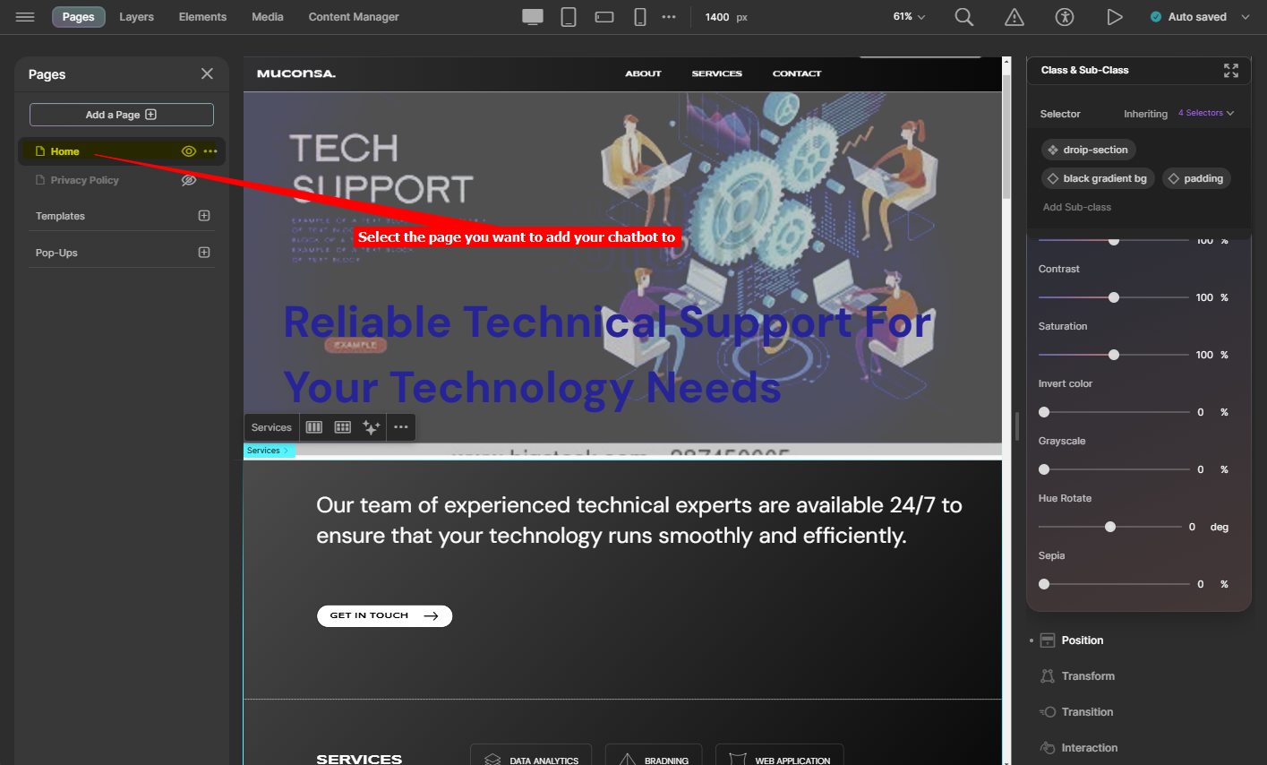 Select Elements on the top menu bar, scroll down to Components and drag the Code element onto the Header on your page
