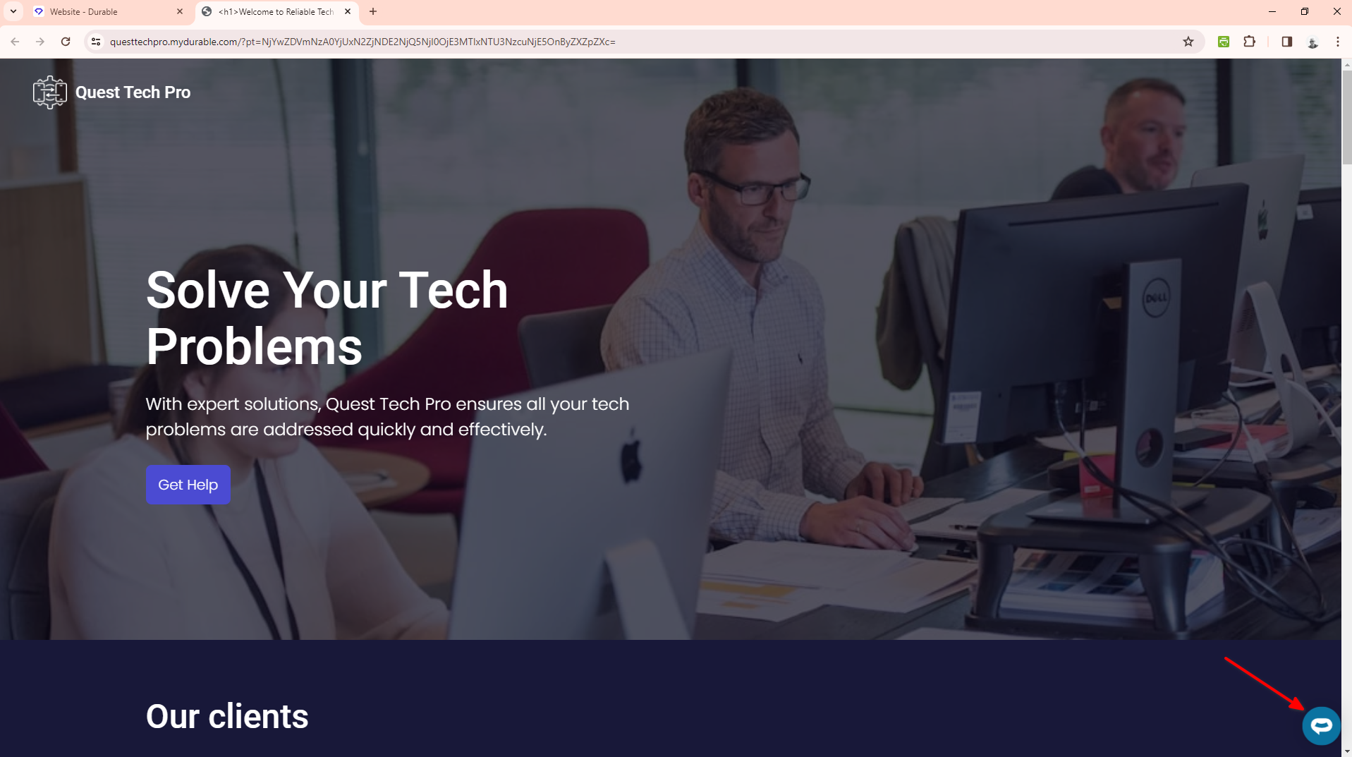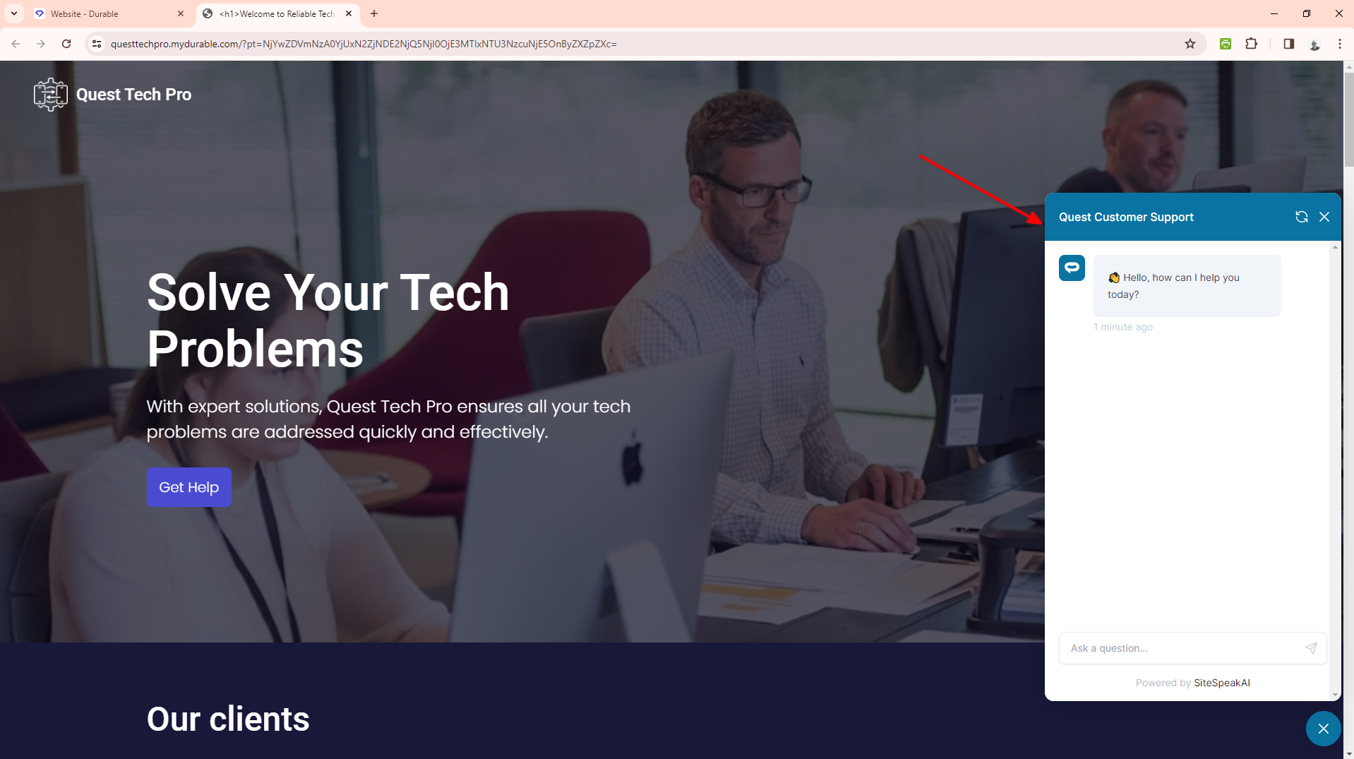 Your AI support agent button will now be displayed on your Durable website page