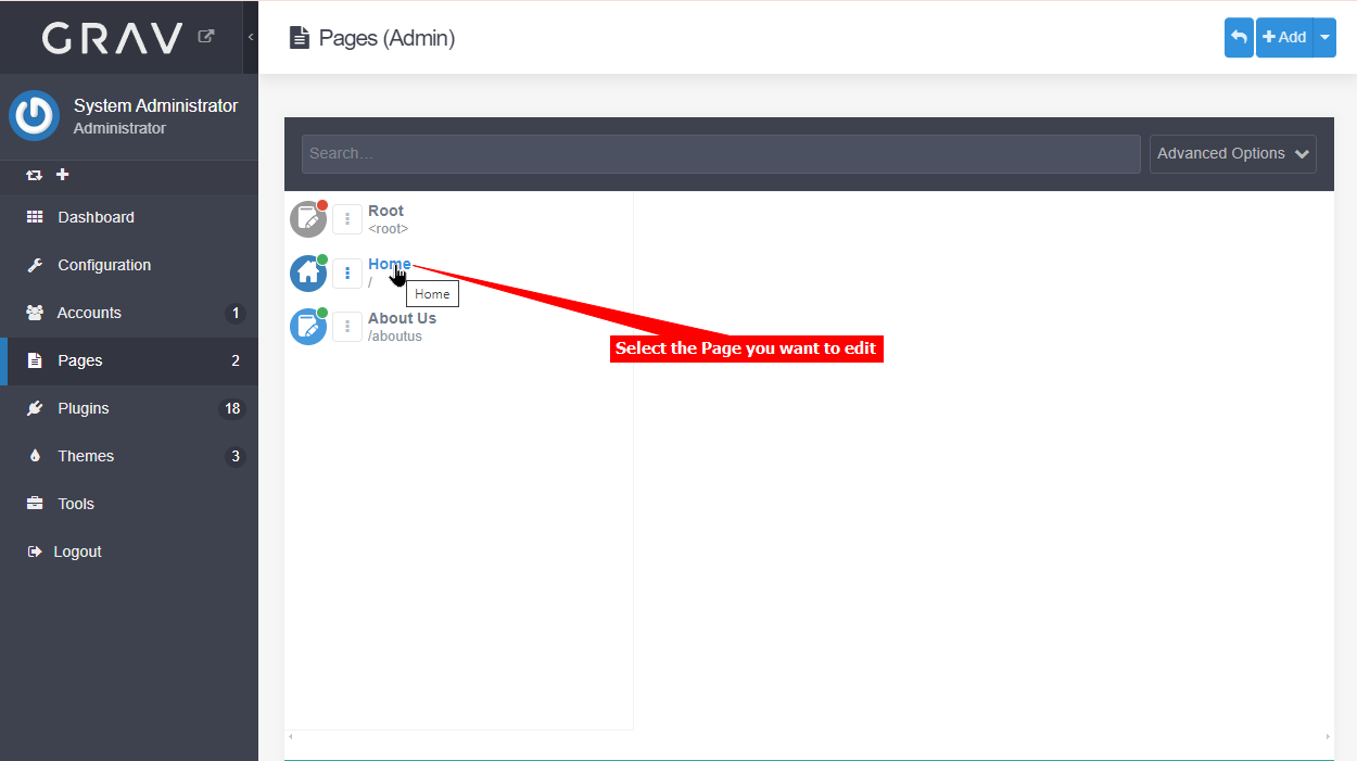 - Select Pages on the left sidebar.